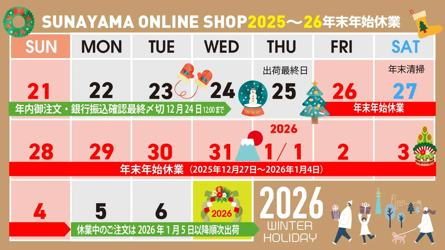 ■SUNAYAMAオンラインショップ年末年始休業に関するお知らせ