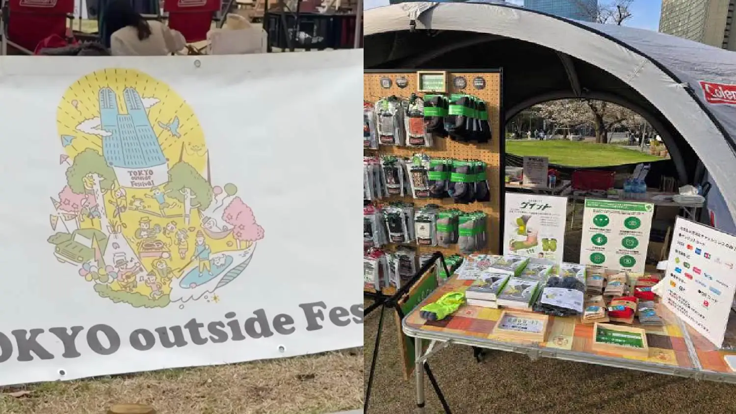 2026年3月28日、29日に新宿中央公園で開催された「TOKYO outside Festival」に出展し、Coleman、インセクトシールド、MOZのソックスを販売させていただきました。